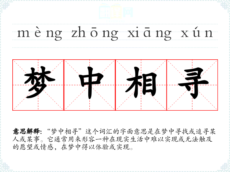 “梦中相寻”这个词汇在中文中的使用历史悠久,源自古代文人对梦境的描写和解读。随着时间的推移,它逐渐被广泛应用于各种文学作品和日常对话中,成为表达深层情感和愿望的常用词汇。