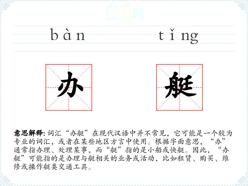 “办艇”这一词汇虽然不常见,但在特定领域和语境中具有明确的意义。了解和掌握这样的词汇有助于丰富语言表达,尤其是在涉及特定主题的交流中。