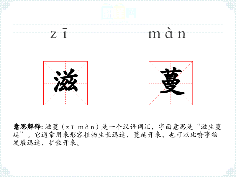 - 专业领域:在农业或生态学中,“滋蔓”用于描述植物的快速生长和扩散,如“杂草滋蔓”。