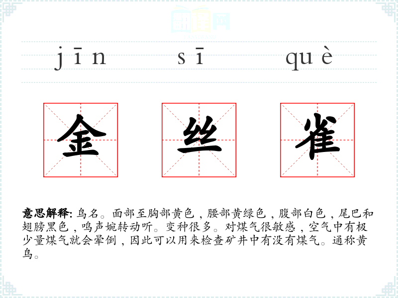 金丝雀的分字解释