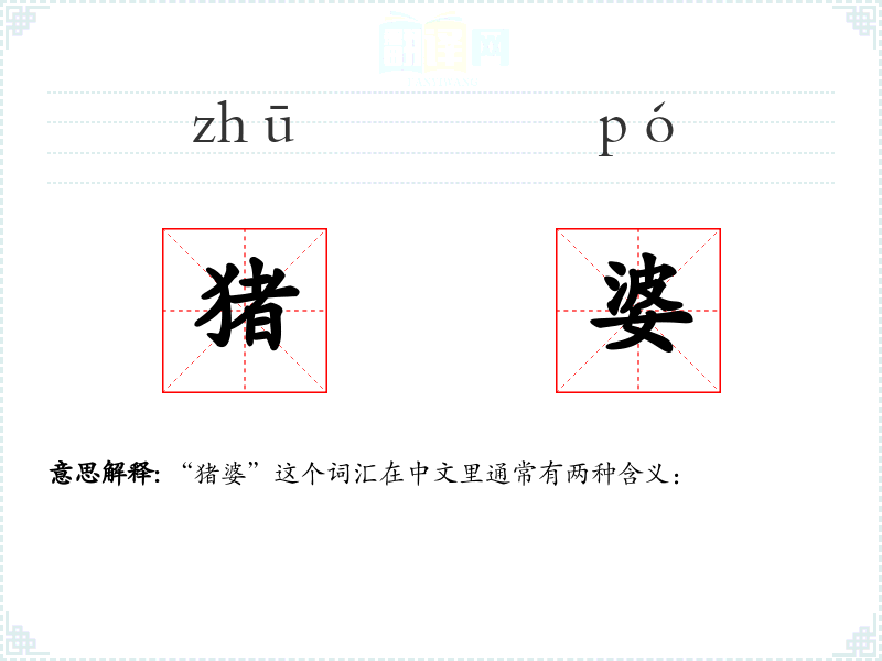 “猪婆”这个词汇在中文里通常有两种含义: