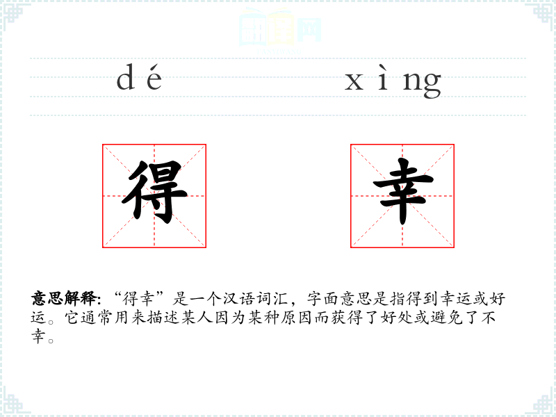“得幸”是一个汉语词汇,字面意思是指得到幸运或好运。它通常用来描述某人因为某种原因而获得了好处或避免了不幸。