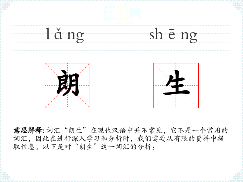 词汇“朗生”在现代汉语中并不常见,它不是一个常用的词汇,因此在进行深入学习和分析时,我们需要从有限的资料中提取信息。以下是对“朗生”这一词汇的分析: