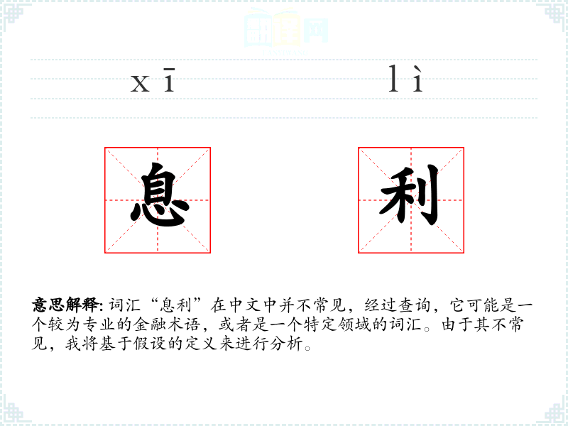 词汇“息利”在中文中并不常见,经过查询,它可能是一个较为专业的金融术语,或者是一个特定领域的词汇。由于其不常见,我将基于假设的定义来进行分析。
