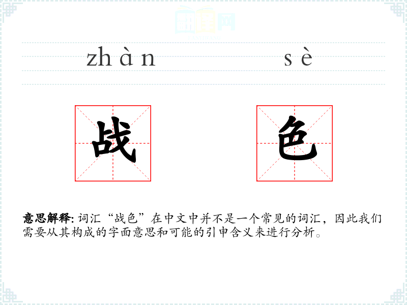 词汇“战色”在中文中并不是一个常见的词汇,因此我们需要从其构成的字面意思和可能的引申含义来进行分析。