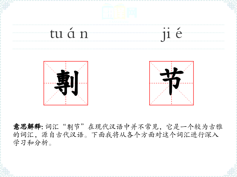 词汇“剸节”在现代汉语中并不常见,它是一个较为古雅的词汇,源自古代汉语。下面我将从各个方面对这个词汇进行深入学*和分析。