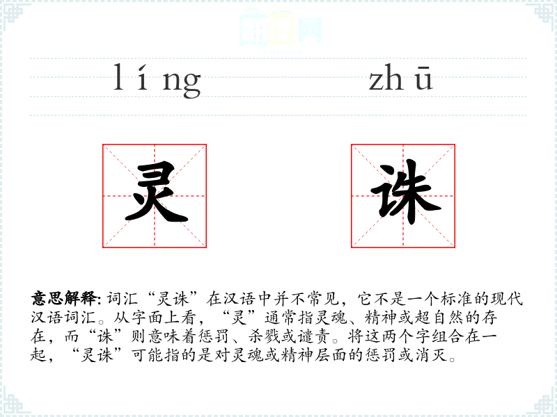 词汇“灵诛”在汉语中并不常见,它不是一个标准的现代汉语词汇。从字面上看,“灵”通常指灵魂、精神或超自然的存在,而“诛”则意味着惩罚、杀戮或谴责。将这两个字组合在一起,“灵诛”可能指的是对灵魂或精神层面的惩罚或消灭。