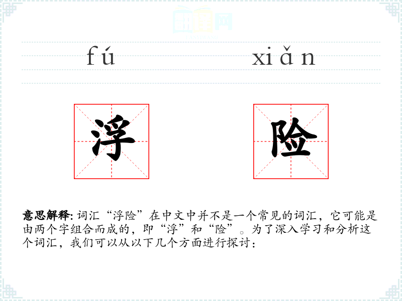 词汇“浮险”在中文中并不是一个常见的词汇,它可能是由两个字组合而成的,即“浮”和“险”。为了深入学习和分析这个词汇,我们可以从以下几个方面进行探讨: