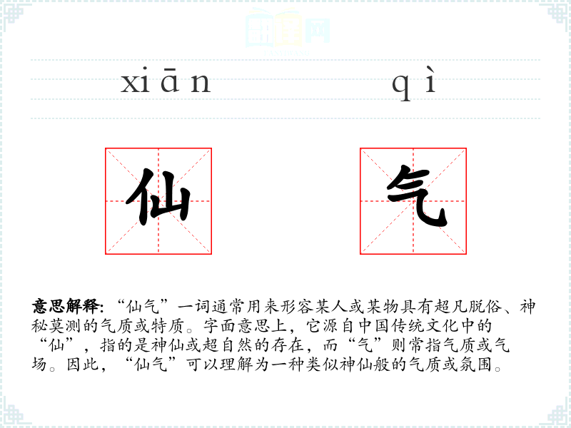 - 口语:在日常口语中,人们可能会用“仙气”来形容某人的外表或行为非常优雅、不食人间烟火。