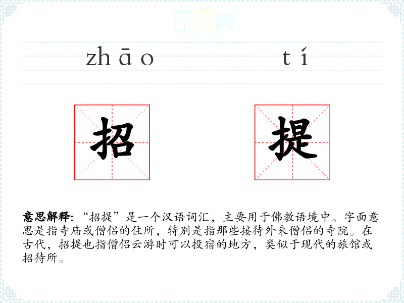"招提"的意思解释、招提是什么意思由翻译网汉语词典查词提供。