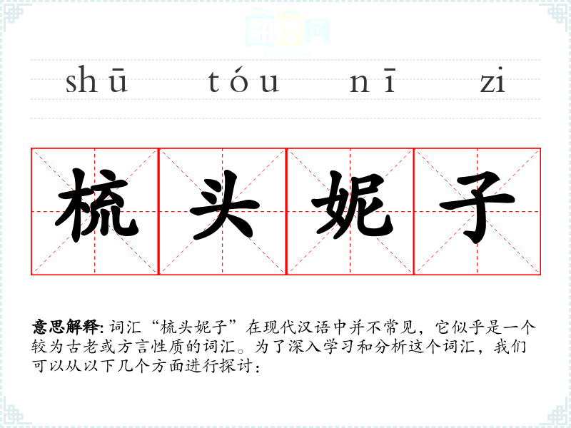 词汇“梳头妮子”在现代汉语中并不常见,它似乎是一个较为古老或方言性质的词汇。为了深入学习和分析这个词汇,我们可以从以下几个方面进行探讨: