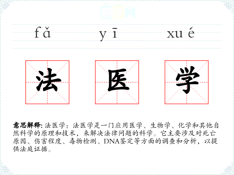 - 专业领域:在法律和医学领域,法医学是一个专门的研究和实践领域,涉及详细的科学分析和证据报告。