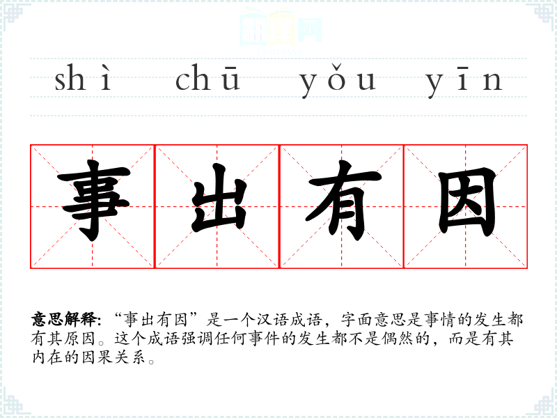 - 文学语境:在文学作品中,作者可能使用“事出有因”来暗示故事情节的发展有其深层次的原因,引导读者深入思考。