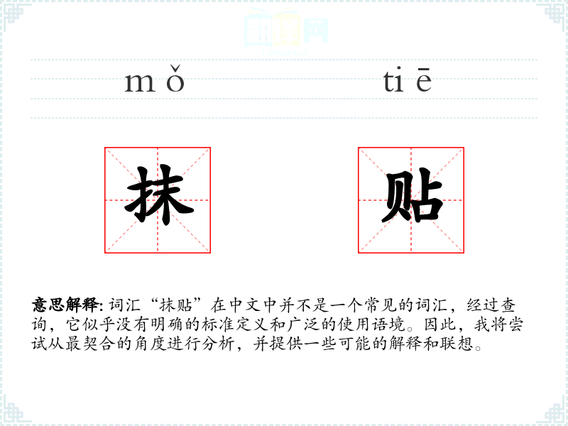 由于“抹贴”不是一个标准词汇,我们可以尝试从字面意思来理解:
