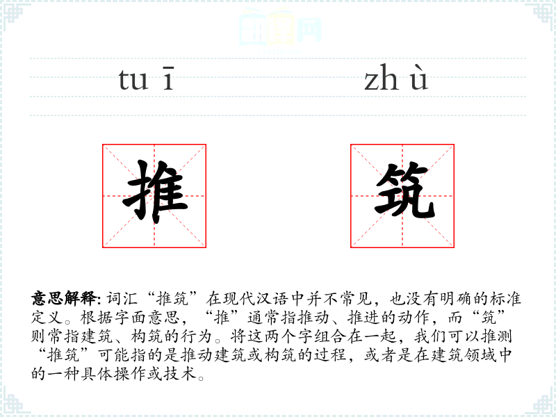 由于“推筑”不是一个标准词汇,我们只能根据字面意思进行推测: