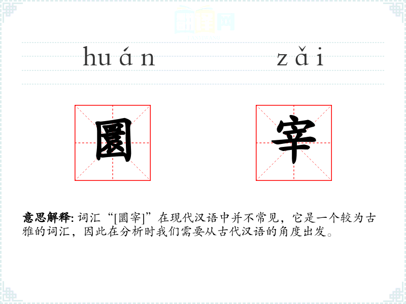 词汇“[圜宰]”在现代汉语中并不常见,它是一个较为古雅的词汇,因此在分析时我们需要从古代汉语的角度出发。