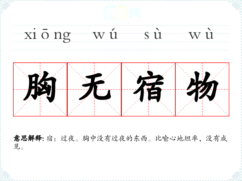 宿:过夜。胸中没有过夜的东西。比喻心地坦率,没有成见。