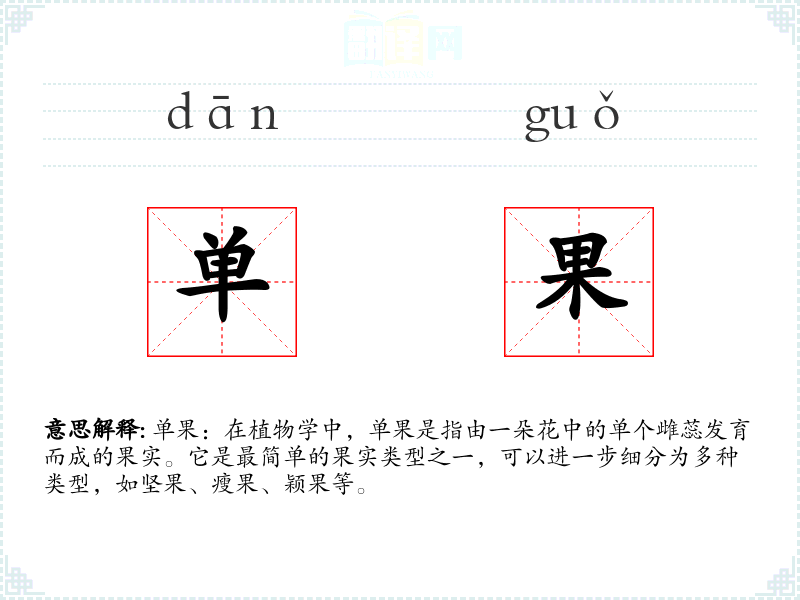 - 重要性:在语言学习和表达中,掌握专业术语如单果,有助于更准确地进行学术交流和知识传播。