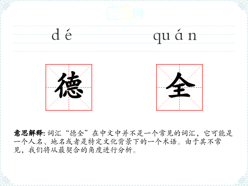 词汇“德全”在中文中并不是一个常见的词汇,它可能是一个人名、地名或者是特定文化背景下的一个术语。由于其不常见,我们将从最契合的角度进行分析。