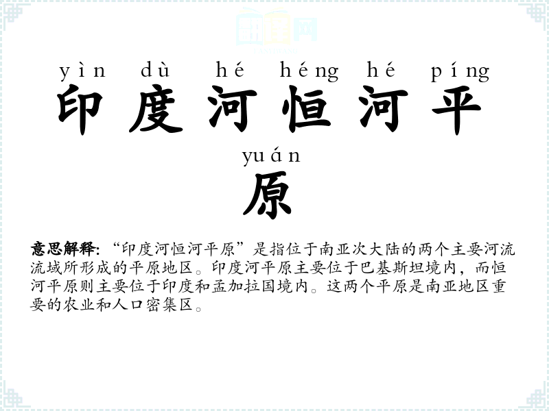 “印度河恒河平原”这个词汇不仅代表了地理区域,更承载了丰富的历史和文化意义。在语言学*和表达中,理解和运用这样的词汇能够帮助我们更深入地理解不同文化的内涵。