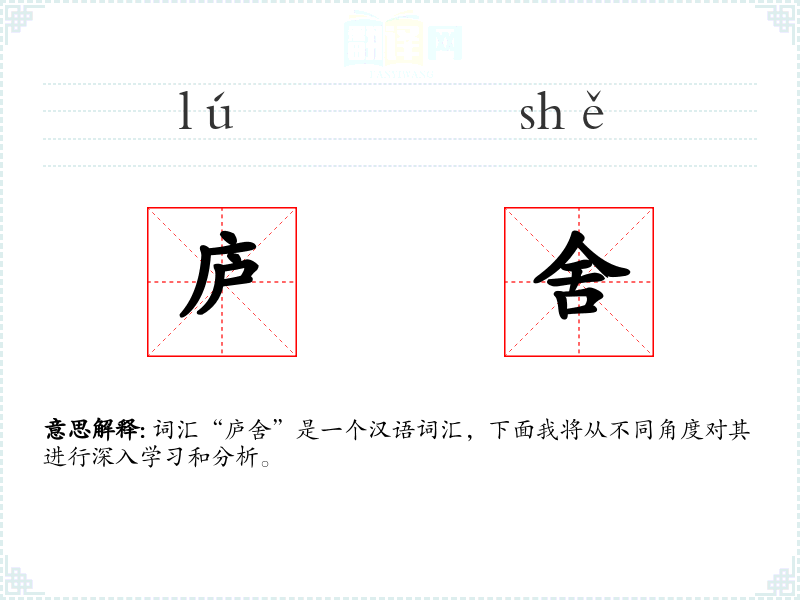 词汇“庐舍”是一个汉语词汇,下面我将从不同角度对其进行深入学*和分析。
