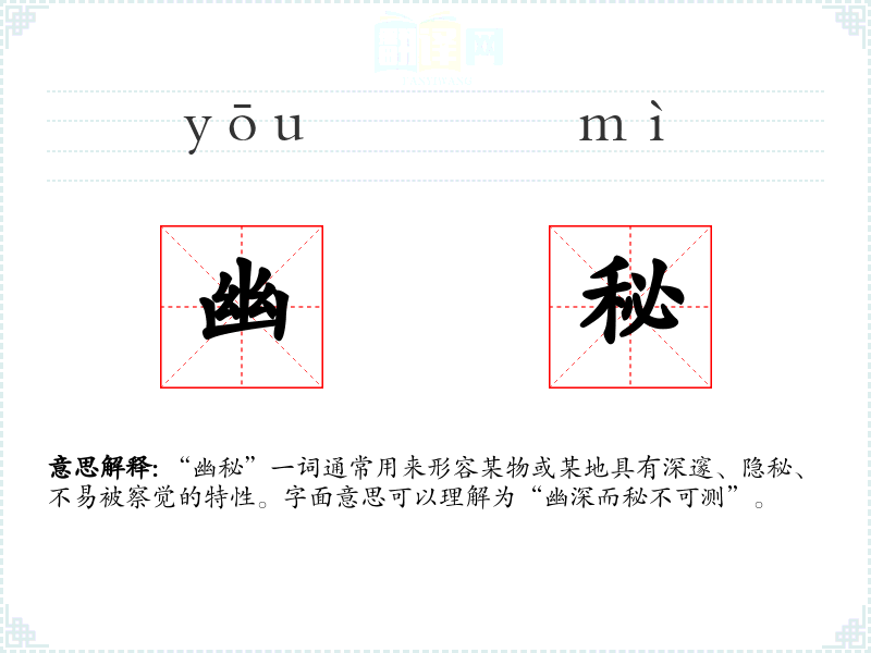 - 同义词:神秘、隐秘、深邃、幽深