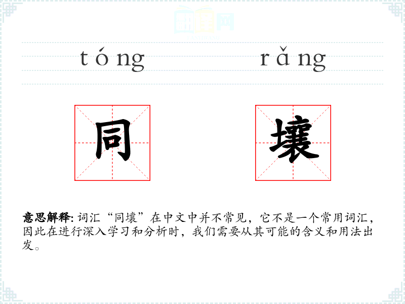 词汇“同壤”在中文中并不常见,它不是一个常用词汇,因此在进行深入学*和分析时,我们需要从其可能的含义和用法出发。