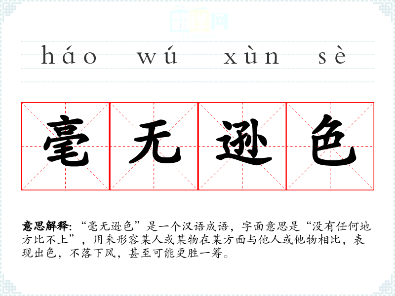 “毫无逊色”是一个汉语成语,字面意思是“没有任何地方比不上”,用来形容某人或某物在某方面与他人或他物相比,表现出色,不落下风,甚至可能更胜一筹。