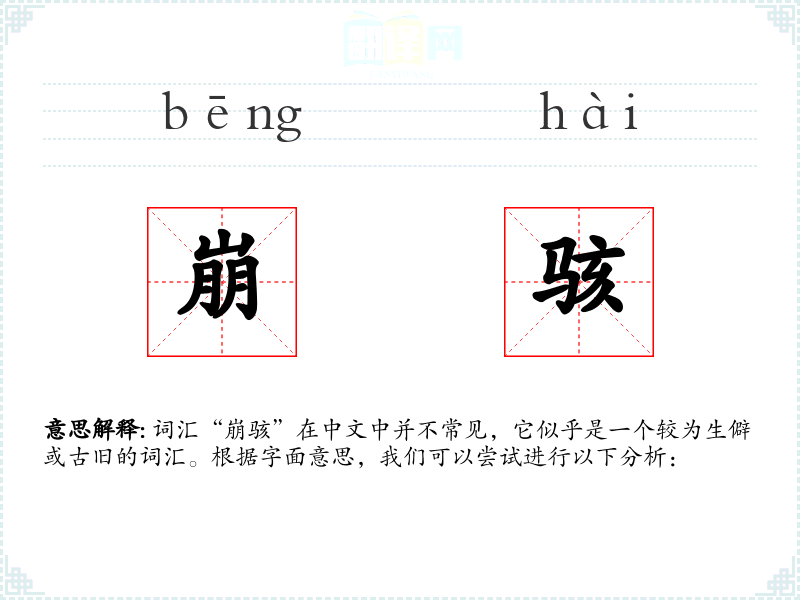 词汇“崩骇”在中文中并不常见,它似乎是一个较为生僻或古旧的词汇。根据字面意思,我们可以尝试进行以下分析: