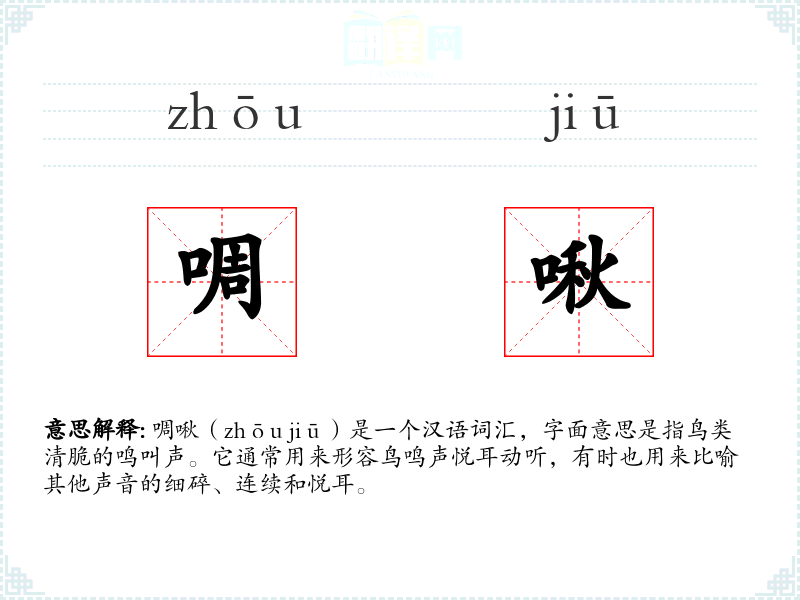 "啁啾"的意思解释、啁啾是什么意思由翻译网汉语词典查词提供。