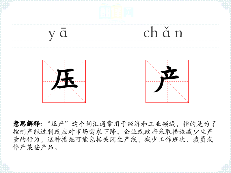 - 专业领域:在经济学和工业管理领域,“压产”是一个专业术语,用于分析和解决产能过剩的问题。