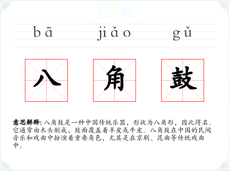 "八角鼓"的意思解释、八角鼓是什么意思由翻译网汉语词典查词提供。