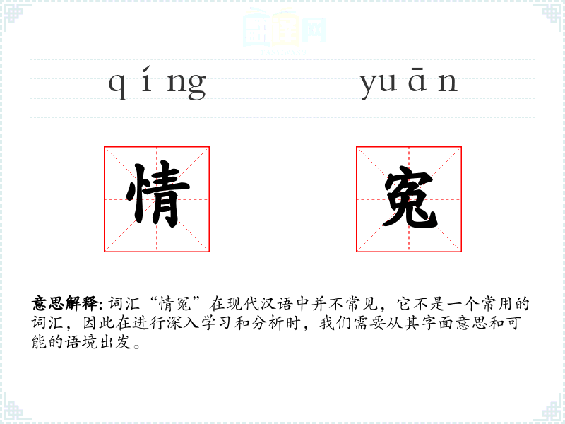 词汇“情冤”在现代汉语中并不常见,它不是一个常用的词汇,因此在进行深入学习和分析时,我们需要从其字面意思和可能的语境出发。