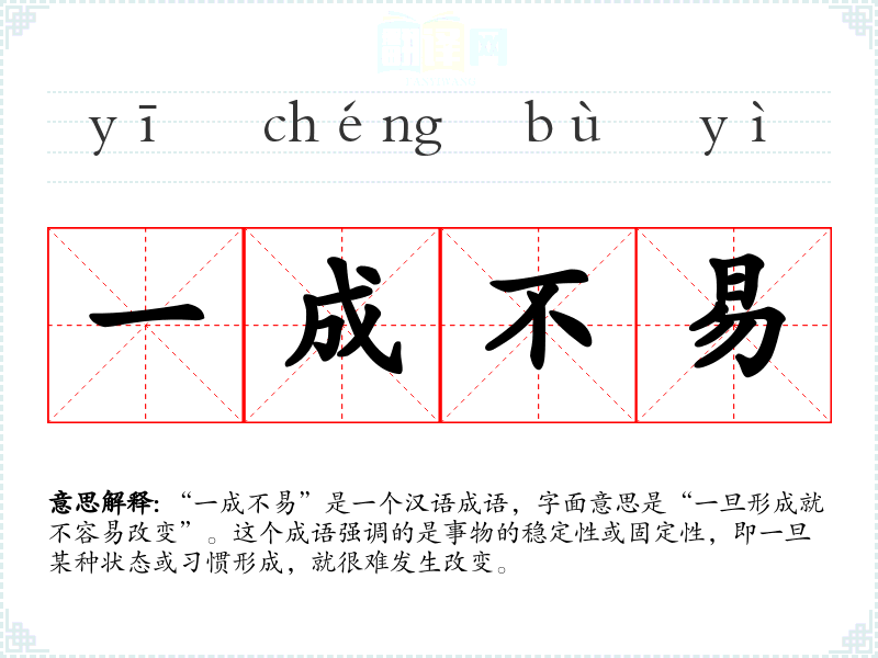 ※ "一成不易"的意思解释、一成不易是什么意思由翻译网汉语词典查词提供。