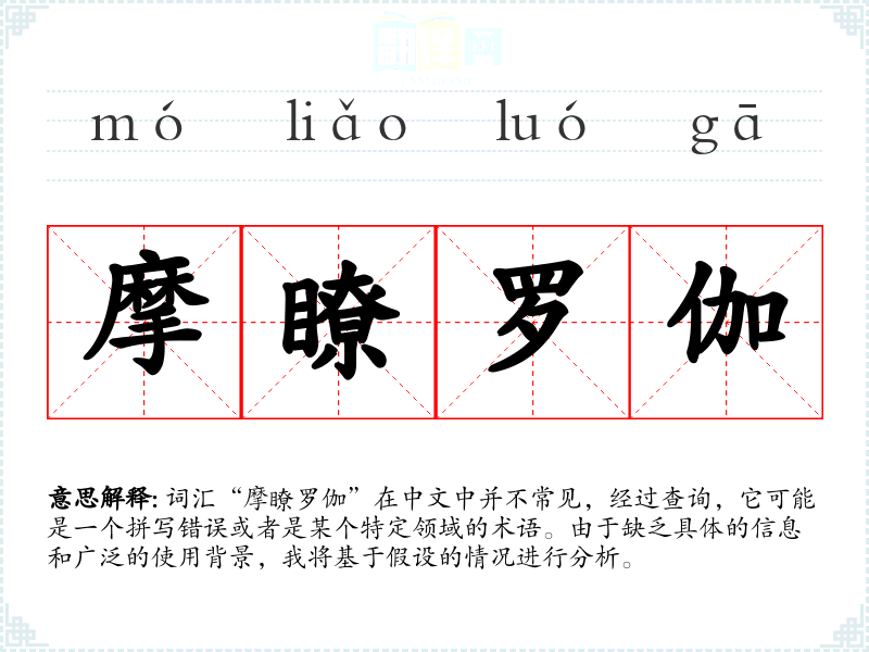 词汇“摩瞭罗伽”在中文中并不常见,经过查询,它可能是一个拼写错误或者是某个特定领域的术语。由于缺乏具体的信息和广泛的使用背景,我将基于假设的情况进行分析。