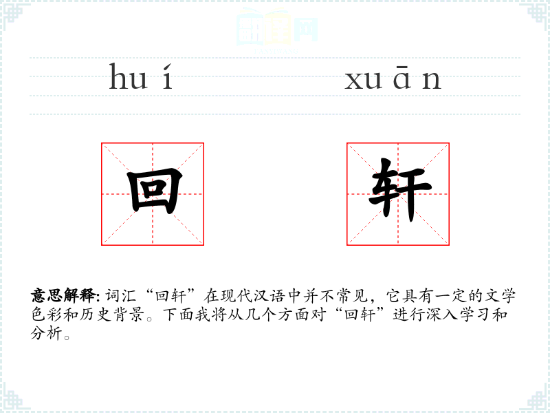 - 专业领域:在历史或文学研究领域,可能会专门讨论“回轩”在古代文学中的使用和意义。
