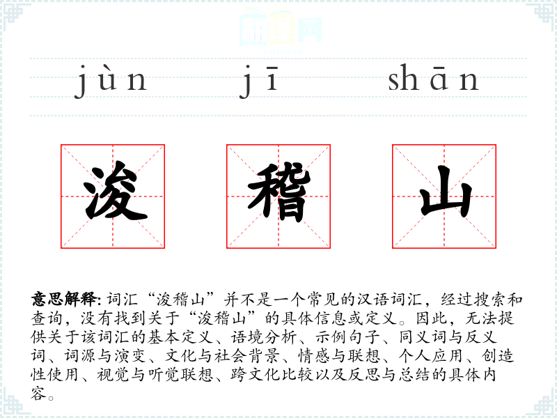 如果没有更多的信息,我们可以假设“浚稽山”可能是一个虚构的地名,或者是一个非常冷僻的词汇,因此在实际的语言学习和应用中可能并不常见。在这种情况下,我们可以强调词汇学习的重要性,以及在遇到不熟悉的词汇时如何通过各种资源进行查询和学习,以丰富自己的词汇量和语言理解能力。