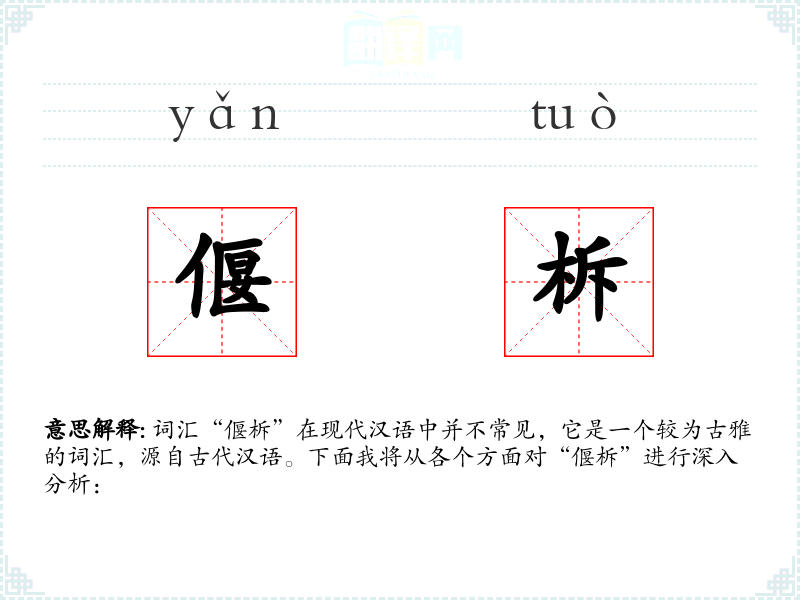 词汇“偃柝”在现代汉语中并不常见,它是一个较为古雅的词汇,源自古代汉语。下面我将从各个方面对“偃柝”进行深入分析: