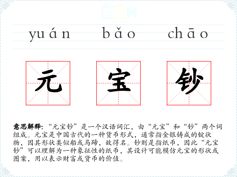 在其他文化中,类似的词汇可能是“金币”或“纸币”,但“元宝钞”特有的历史和文化背景使其在汉语中具有独特的意义和价值。