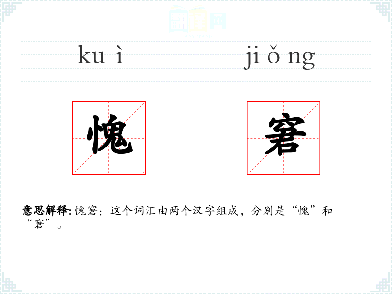 愧窘:这个词汇由两个汉字组成,分别是“愧”和“窘”。