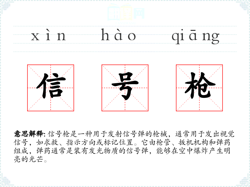 "信号枪"的意思解释、信号枪是什么意思由翻译网汉语词典查词提供。