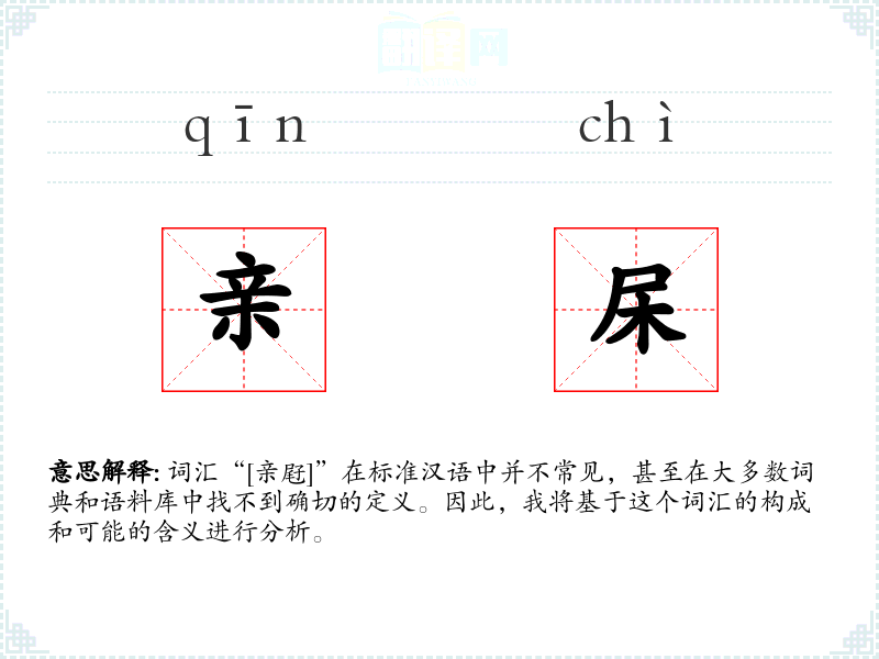 词汇“[亲屘]”在标准汉语中并不常见,甚至在大多数词典和语料库中找不到确切的定义。因此,我将基于这个词汇的构成和可能的含义进行分析。