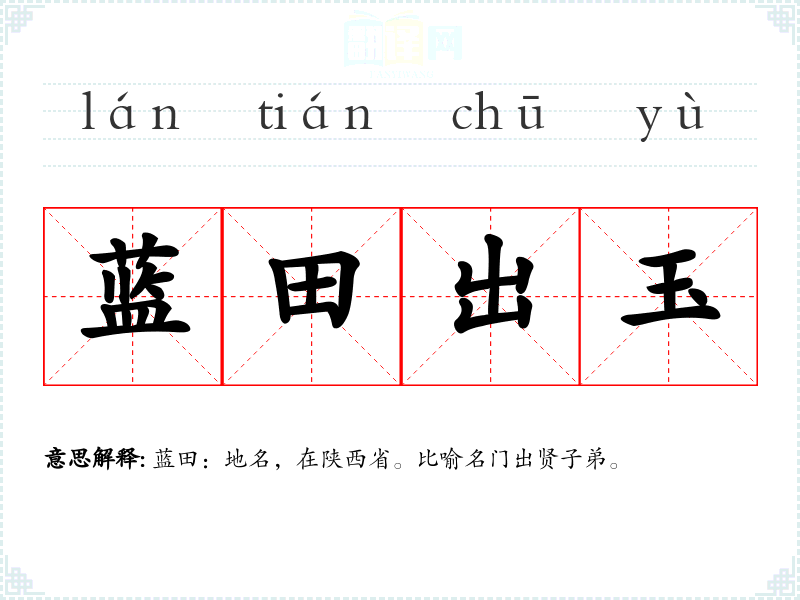 蓝田:地名,在陕西省。比喻名门出贤子弟。