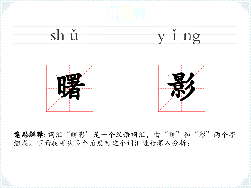 - 词源:“曙”源自古代汉语,意为天刚亮;“影”也是古汉语词汇,意为影子。