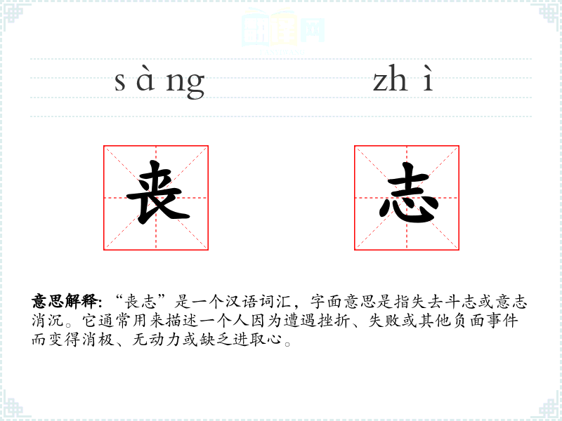 - 专业领域:在心理学领域,“丧志”可能与抑郁症等心理疾病相关,描述患者的心理状态。