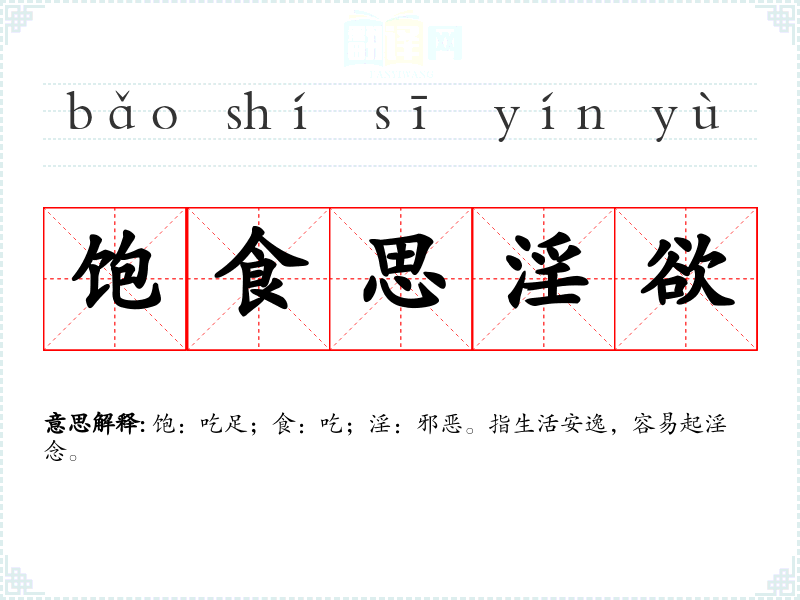 饱:吃足;食:吃;淫:邪恶。指生活安逸,容易起淫念。