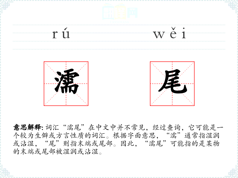 - 词源:“濡”源自古代汉语,意为湿润;“尾”则指末端。