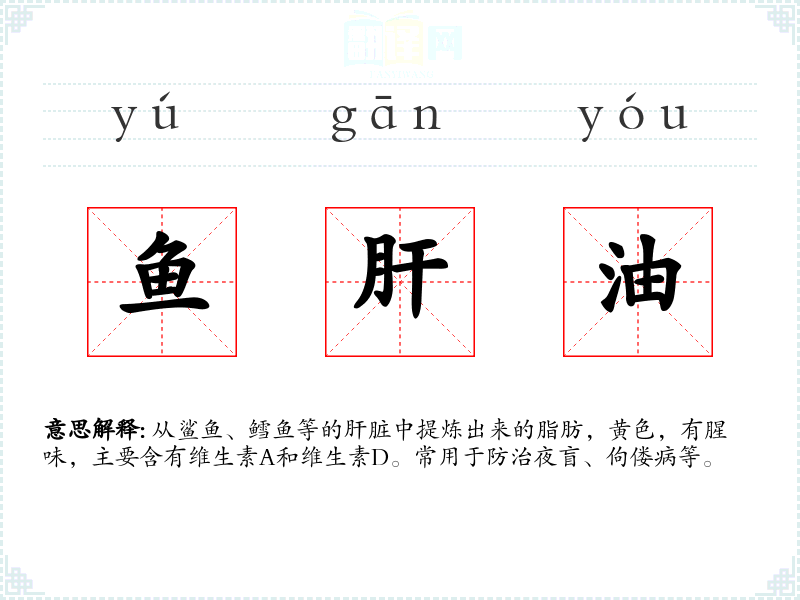 鱼肝油的分字解释