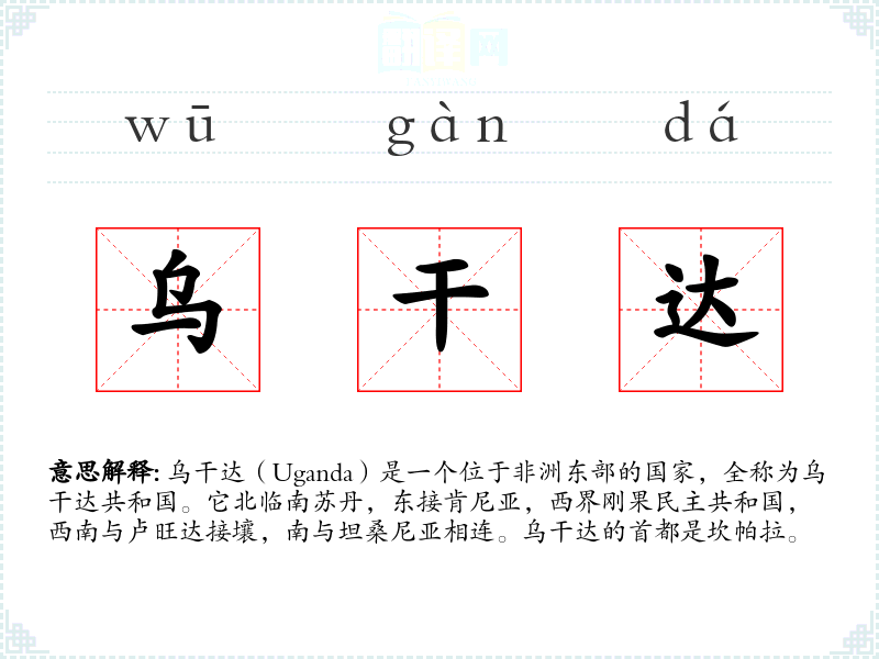 - 反义词:由于“乌干达”是一个特定国家的名称,没有直接的反义词。