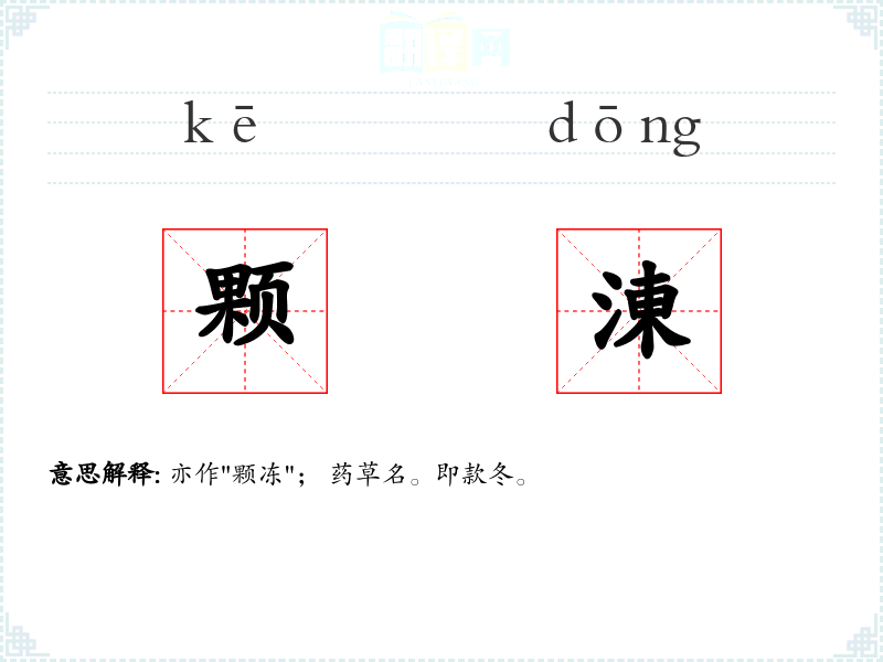 亦作"颗冻"; 药草名。即款冬。